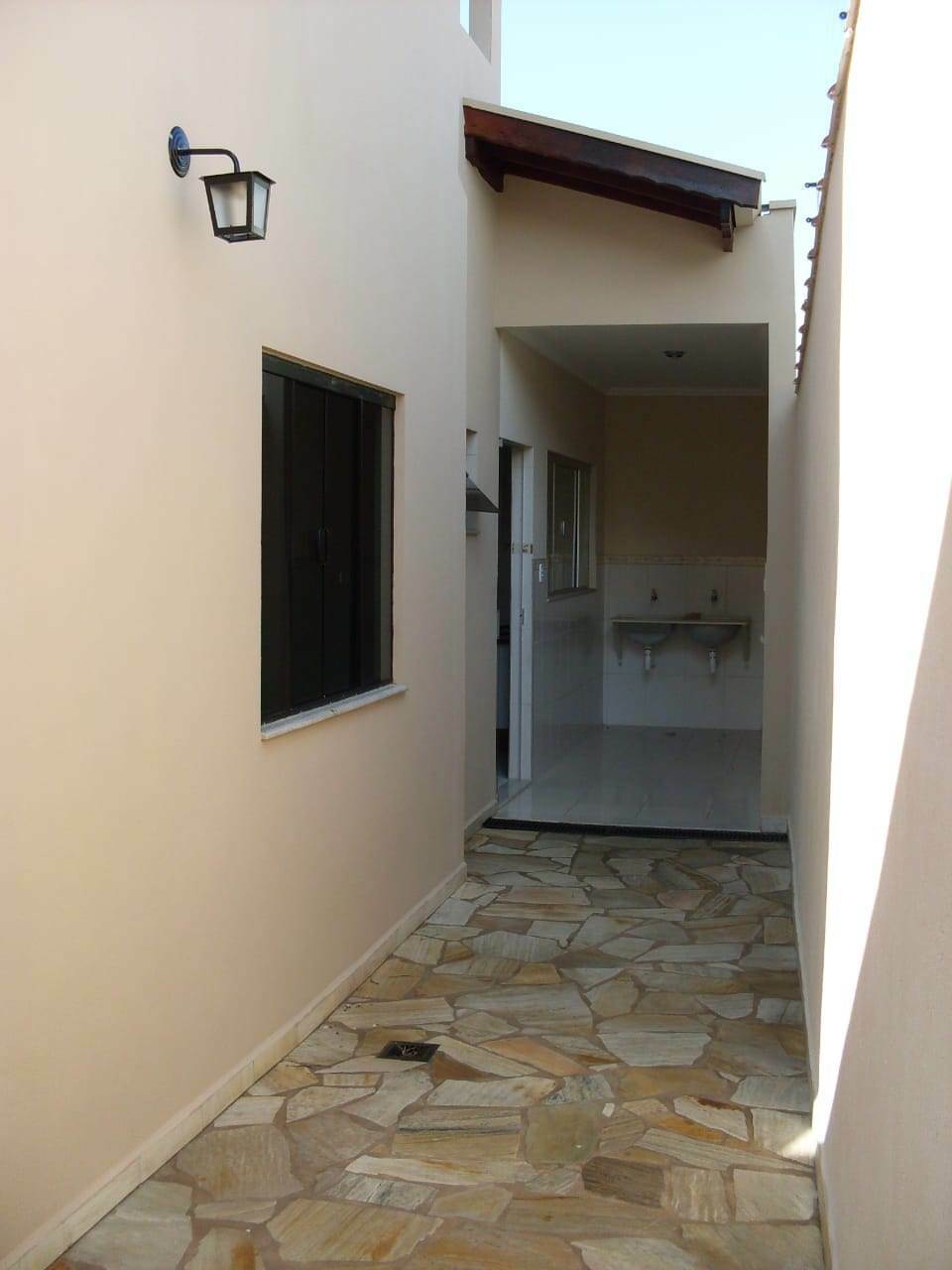 Casa com dois quartos uma suíte e closet, jardim de inverno, sala ampla para dois ambientes, área de serviço com terraço grande, cozinha e garagem para 3 carros coberta.